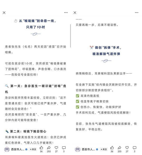 咽喉不仅是发声器官,更是生命的呼吸要道。别再把“喉咙痛”当成小事,早一秒就医,就多十分生机。如果出现异常咽喉症状,请务必重视,及时就医。