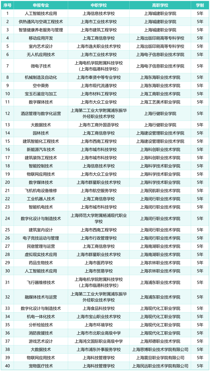 央视网消息:据“上海发布”公众号消息,上海市教委介绍,根据《上海市教育委员会关于继续开展中高职教育贯通培养模式试点工作的通知》和《上海市教育委员会关于继续开展中高职教育贯通培养模式试点工作的补充通知》,经学校申报、专家评议及市教委核定,同意2026年增设上海信息技术学校与上海城建职业学院联合举办的人工智能技术应用等40个中高职教育贯通培养模式专业。学生学籍管理和收费标准按相应规定执行,前3年按中职校有关规定管理,高职阶段按高职院校有关规定管理。